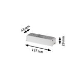 | Mål (højde x bredde x dybde) | H: 29 x B: 137 x T: 43 mm |