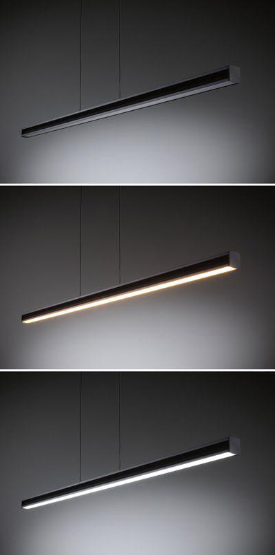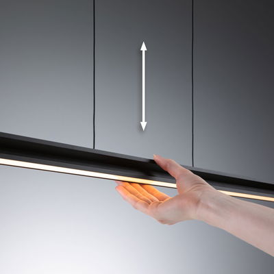 Pendellampen Lesko er ideel til belysning af spise-, køkken- eller arbejdsborde og sikrer maksimal fleksibilitet ved individuelle belysningsstemninger takket være den separat regulerbare lysafgivelse op og ned. Opadtil er der mulighed for alt fra monokrom kontinuerlig belysning til farvede lyseffekter. Ud over den effektfulde farvebelysning kan du også vælge et varmhvidt lys med 3000 K, der skaber en hyggelig atmosfære. Nedadtil kan lysfarven indstilles og dæmpes trinløst takket være den intelligente hvidlysstyring Tunable White - fra varmhvid afslappende hyggebelysning til hvidt dagslys (optimalt som arbejdslys) (2700 K-6500 K). Den integrerede Memory-funktion gemmer de sidst valgte lysindstillinger indtil næste gang, lampen tændes. Med fjernbetjeningen inkluderet i leveringsomfanget kan de to lysudgange styres separat. Pendellampens enkle design i Mat sort passer harmonisk ind i mange forskellige stilarter. Med princippet "Easy Up-and-Down" kan pendellængden nemt indstilles på filigrankablet uden værktøj.