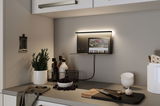 Væglæselampen Jarina i mat sort med integreret fralægnings- og opladningsfunktion forbinder moderne teknik og elegance. Den er især velegnet som ekstra lampe eller læselampe i stuen, soveværelset, gangen, køkkenet og badeværelset. Den direkte og indirekte belysning kan kobles separat. Desuden har lampen et lille fralægningsbord og en USB type C-ladebøsning til hurtig opladning efter den nyeste EU-standard. Med det varmhvide lys skaber lampen en hyggelig atmosfære. Med det 1,20 m lange tekstilkabel med stik er monteringen meget nemt. Du har kun brug for en stikdåse i nærheden. En tilslutning direkte på strømudtaget er også muligt, fordi tekstilkablet kan tages af.