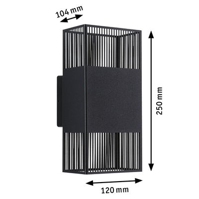 IP44 3000K 120x250mm 2x3,7W Sort