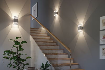 Med sin fascinerende lyseffekt fra udskæringerne er vægarmaturet Tharin i farven Hvid et rigtigt blikfang både inde og ude. Den er udstyret med 2x3,7W fastmonterede LED-lyskilder og er med sin lave indbygningshøjde særligt velegnet til belysning i gangen og trappeopgange. Takket være IP44-beskyttelsen og brugen af rustfrit stål i høj kvalitet kan vægarmaturet Tharin ikke kun monteres i alle indendørs rum, men også i badeværelset, på altanen og på huset udendørs. De individuelt justerbare lysstråler opad og nedad giver mulighed for varierende lyseffekter, der giver alle omgivelse en imponerende stemning. Væglampen har en farvetemperatur på 3000K, der sikrer behagelig belysning. Komponenter af høj kvalitet garanterer lang levetid på mindst 30.000 timer. Det innovative monteringsstik QuickPlug gør installationen nem takket være det enkle stiksystem.