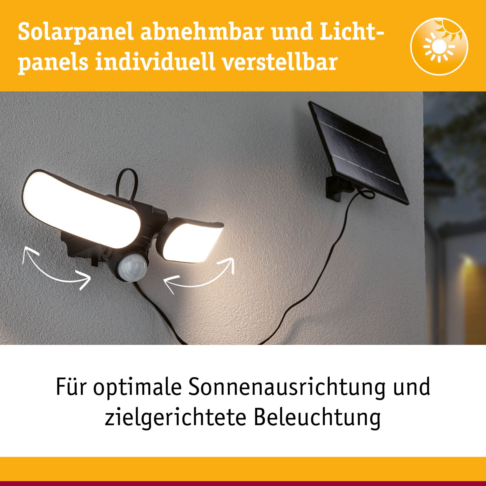 Solar LED-wallwasher Sonlig Twilight-styret bevægelsessensor (IR) IP65 kantet 286x137mm 3000K 2x9W 2x1100lm 3,7V Koksgrå Plast