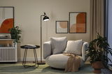 Med sit tidløse og samtidig moderne form- og designsprog passer lampeserien Juna til en bred vifte af indretningsstile og sætter attraktive lysaccenter i boligen. Bord-, gulv- og pendellamperne i serien er afstemt på hinanden og kan kombineres harmonisk efter ønske. Den sort-violette matte standerlampe med æstetiske farvedetaljer i champagneguld er alsidig og ideel som ekstra belysning ved siden af sengen, til det hyggelige læsehjørne eller ved siden af sofaen. Dens forarbejdning af høj kvalitet sikrer ikke kun et tiltalende udseende, men også en lang levetid. Det bevægelige lampehoved muliggør fleksibel orientering af lyset, mens det farvekoordinerede tekstilkabel sikrer komfortabel og sikker brug. Dekorative topforspejlede pærer med en E14-sokkel, som giver blændingsfrit lys, kan varmt anbefales som lyskilde. Afhængigt af den anvendte lyskilde kan lampen med lysdæmper dæmpes.